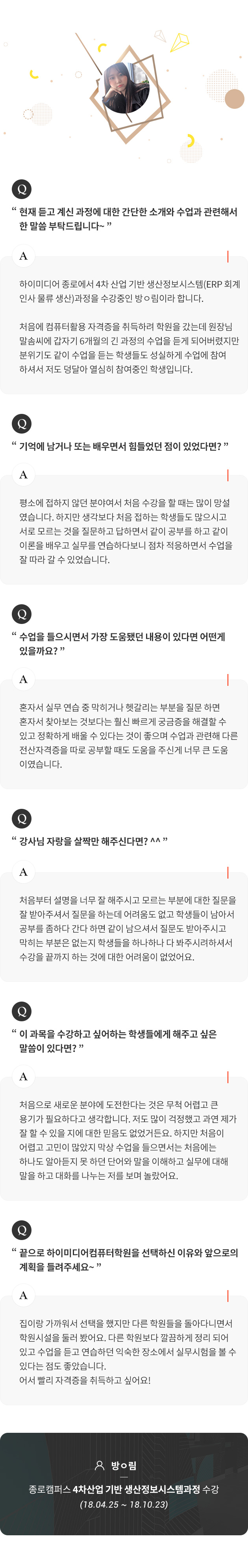 하이미디어 수강생분들의 아주 소중하고 특별한 인터뷰